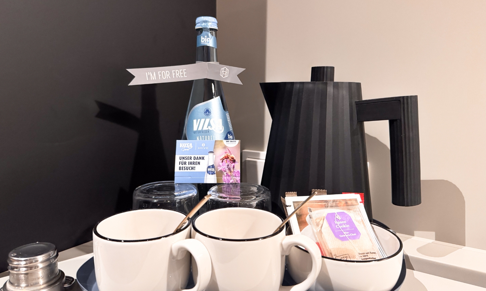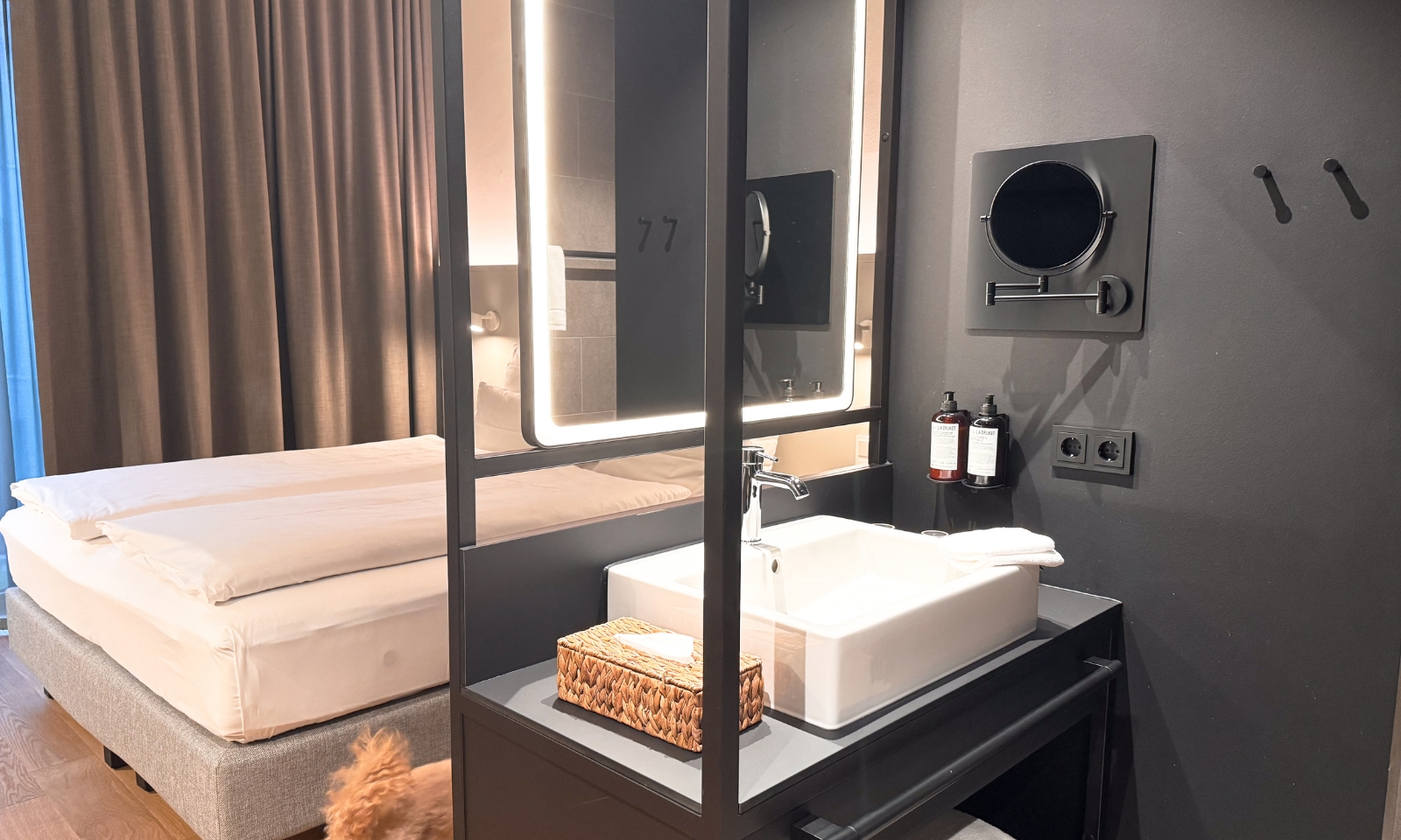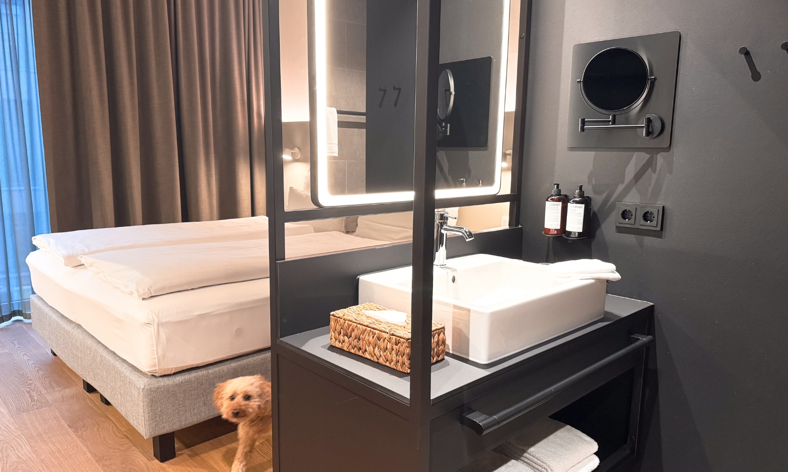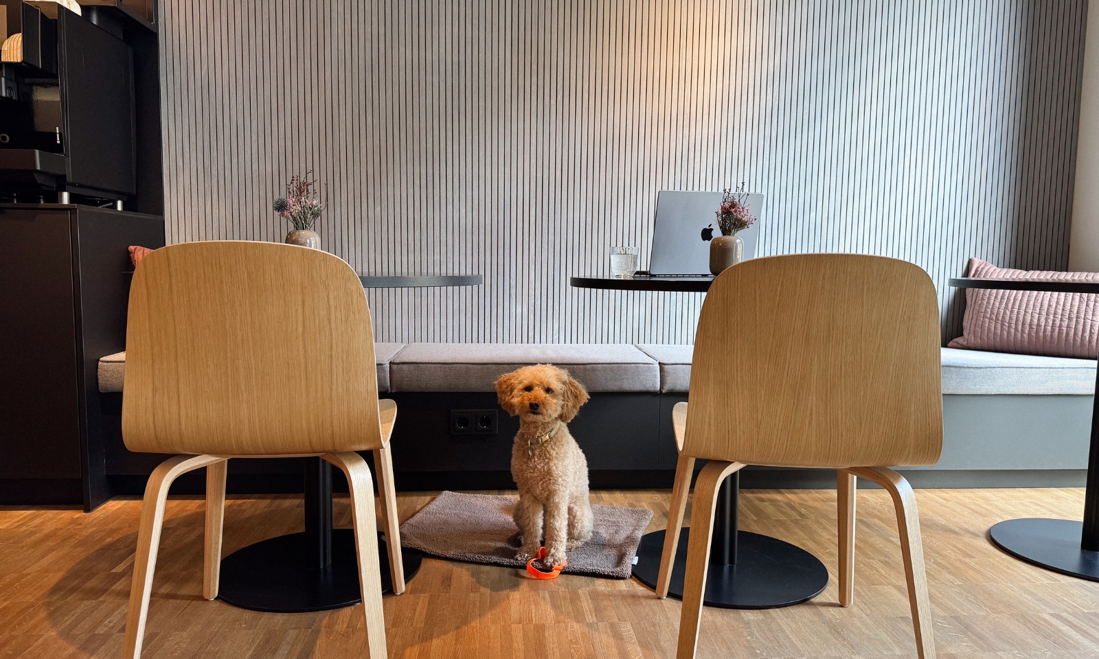 Hunde sind im HIIVE willkommen. Gegen eine Tagespauschale gibt es ein Hundetreatment mit großem Körbchen, Näpfen und Hundekeksen.