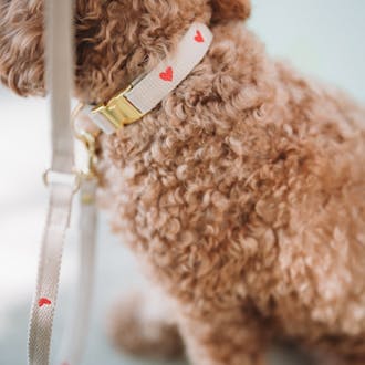 Das Leinen- und Halsband-Set Cotton Sand von Fräulein Lotti wird in Ulm gefertigt, ist komplett vegan und kann mit deinem Wunschmotiv bestickt werden von Herzen bis Croissant. Nachhaltig, stilvoll und mit viel Liebe gemacht. Mit unserem Code Java5 erhältst du 5% Rabatt.